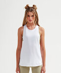Crew neck tank top. Organic cotton. Deep-drop armholes with racerback. Curved hem detailing. We recommend using block out vinyl and inks.Product contains no branded neck or waist label. Removable Kimble or looped garment tags. Inner seam label holds important product information on one label with a second label containing brand information which can be cut-away.